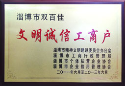 行業(yè)誠信經營企業(yè),淄博市文明誠信工商戶,誠實守信,誠信為本。